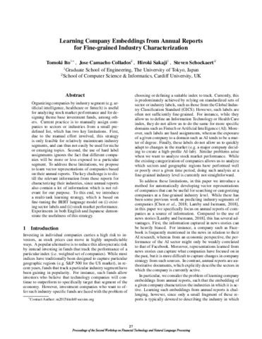 Learning company embeddings from annual reports for fine-grained industry characterization.