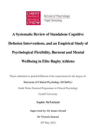 A systematic review of standalone cognitive defusion interventions, and an Empirical study of psychological flexibility, burnout and mental wellbeing in elite rugby athletes.