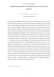 For a ruling elite thoroughly hostile to the very idea of revolution, the centenary of 1917 was not a welcome distraction for Russia’s powerful incumbents. At the same time, it was too significant to ignore. This chapter examines how Russia’s rulers navigated this conundrum, and what we can learn about their approach to historical representation. Was the centenary merely a tricky occasion for Moscow to manage? Or was there any political capital to be gained from it? The argument here is that there was a deliberate ambiguity in the “official” commemoration of the Russian Revolution and the birth of the Soviet state. This ambiguity stemmed not only from the later Soviet triumph over the Nazi invader, or from the post-war geopolitical might of the USSR, but from a confusing combination of imperial fantasy and pride in the historically progressive and global influence of Soviet socialism. Through a reading of the country’s modern history that stresses the importance of a strong state and an overarching historical continuity, both the Russian Revolution and the subsequent course of Soviet power have been integrated into the Putin regime’s preferred national historical narrative.