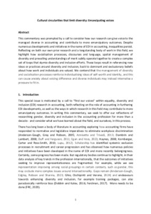 This commentary was prompted by a call to consider how our research can give voice to the managed diversity in accounting and contribute to more emancipatory outcomes. Despite numerous developments and initiatives in the name of EDI in accounting, inequalities persist. Reflecting on both our own prior research and a longstanding body of work in this field, we highlight how socialisation processes, discourses and language, spatial management of diversity and prevailing understandings of merit subtly operate together to create a complex set of loops that stymie diversity and inclusion efforts. These loops result in referencing new ideas or practices around diversity and inclusion, back to dominant and exclusionary beliefs about how work and individuals are valued. We contend that the management of diversity, and socialisation processes reinforce individualising ideas of self-worth and identity, and this can cause anxiety about voicing difference and diverse individuals may instead internalise a pressure to fit in.