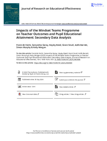 Impacts of the Mindset Teams programme on teacher outcomes and pupil educational attainment: secondary data analysis.