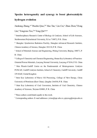 | Zhang, Jiankang, Qiao, Panzhe, Tan, Hao, Cui, Lin, Zhou, Zhan, Lin, Dong, Tuo, Yongxiao and Qin, Yong 2024. Species heterogeneity and synergy to boost photocatalytic hydrogen evolution. ACS Catalysis 14 (20) , pp. 15699-15712. 10.1021/acscatal.4c03593 |