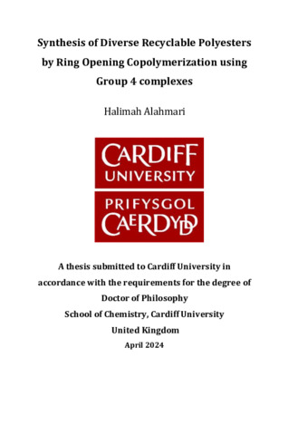 The ring-opening copolymerisation (ROCOP) of epoxides and anhydrides affords polyesters which may be (bio)degradable and/or compostable. In addition, some monomers are prepared from renewable resources. This thesis presents Group 4 metal complexes which have been prepared as potential initiators for anhydride/epoxide ROCOP; their catalytic performance is discussed. Chapter 1 discusses the need for such polymers in light of increasing global demand for plastics, rising crude oil prices and environmental stewardship. A brief review of the chemical literature on ROCOP with a particular focus on catalyst development and provides context for the type of the complexes used in this work. Along with some background relating to polymer characterization. Chapter 2 details the synthesis and characterisation of titanium alkoxide Salen-type complexes which contain C2 and C3 backbone (backbone between two imines) which were evaluated as catalysts for this copolymerization of epoxides and anhydrides. Salen complexes are able to perform copolymerisation with high conversions, selectivity, and moderate molecular weight. A range of monomers were employed, thereby diversifying the range of available polymers (and associated properties). The copolymerization reaction was evaluated under various conditions for example: including with and without Lewis base, different types of Lewis base, and the polymers were investigated using 1H NMR spectroscopy, MALDI-ToF-MS, IR spectroscopy, and gel permeation chromatography. Chapter 3 describes the synthesis Salpy complexes bearing pyridyl unit ligands and using them as catalysts for epoxide/anhydride copolymerisation under various conditions. This chapter probes the ring opening copolymerisation with Group 4 metals, different coligands, and phenoxide substituents. Studying the effect of the steric and electronic environment imposed by the Salpy ligand on the polymerization system. Comparisons are iv made between the data obtained for Salen complexes in terms of reactivity, substrate scope, and GPC data. Polymers were evaluated by 1H NMR spectroscopy, IR and by MALDI-ToF-MS. Chapter 4 The commercially available group 4 indenyl complexes were used as catalysts for the ROCOP of epoxides and anhydrides. These complexes have been found to produce polymers with the highest molecular weight values. Chapter 5 contains full experimental details and characterizing data for all ligands and complexes described within the thesis.