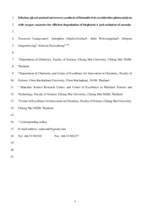 Luangwanta, Tawanwit, Chachvalvutikul, Auttaphon, Watwiangkham, Athis, Jungsuttiwong, Siriporn and Kaowphong, Sulawan 2024. Ethylene glycol-assisted microwave synthesis of bismuth-rich oxychlorides photocatalysts with oxygen vacancies for efficient degradation of bisphenol A and oxidation of arsenite. Journal of Environmental Chemical Engineering 12 (5) , 114100. 10.1016/j.jece.2024.114100 |