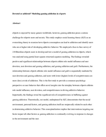 Devoted or addicted? Modeling gaming addiction in eSports.
