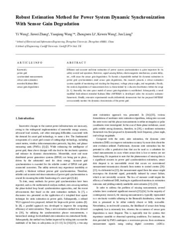 Robust estimation method for power system dynamic synchronization with sensor gain degradation.