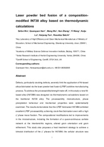 Laser powder bed fusion of a composition-modified IN738 alloy based on thermodynamic calculations.