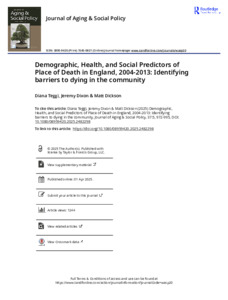 The reduction of hospital deaths is a policy priority in most developed countries. However, health and social care systems experience difficulties in delivering this outcome. Moreover, studies of place of death fail to identify barriers to dying in the community. To address this gap, this study estimates the unique effects of disease diagnosis and care provider type on the probability that ill adults aged 50 and older die in a private home, care home, hospital, or hospice. It does so by applying multinomial logistic regression analysis to data from the English Longitudinal Study of Ageing. Crucially, the analysis controls for sociodemographic factors, disability, and prognostic uncertainty by accounting for whether relatives anticipated the death. Cancer predicts hospice death, while non-cancer diagnosis and care provision by a partner predict hospital death. Dementia is a barrier to dying in a private home, while it is associated with a care home death. This suggests that community palliative care referral pathways cater to cancer diagnoses, while private home-based palliative care services struggle to support adults with dementia to die at home, regardless of prognostic accuracy. Including cancer-free adults in community palliative care referral pathways, and supporting their partners in care provision, would likely reduce hospital deaths.