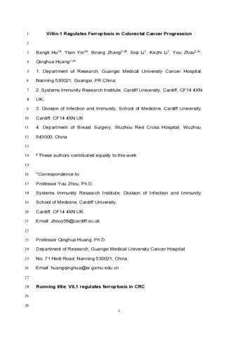 Villin-1 regulates ferroptosis in colorectal cancer progression.