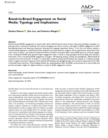 Brand-to-brand engagement on social media: Typology and implications.