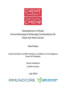 Head and neck cancer (HNC) is the eighth most common cancer with an unmet clinical need for treatment of more aggressive cases. Limited success of therapies in drug discovery pipelines and in clinics has been aƩributed to a lack of models that closely resemble the tumour of origin. Tumour outgrowth is aided by escape of immune surveillance, thus the aim of translaƟonal cancer immunotherapy is to harness the power of the adapƟve immune response. ImmTACs are bispecific T cell engagers comprised of a monoclonal T cell receptor (mTCR) that binds anƟgen pepƟdes presented by major histocompaƟbility complex (pMHC) on transformed cells, and an anƟ-CD3 scFv that binds and acƟvates T-cells. The cancer testes anƟgen NY-ESO-1 is an ideal immunotherapy target due to restricted expression in healthy Ɵssue. However, ImmTACNYESO is currently restricted to HLA.A*02:01-posiƟve paƟents, thus >50% of the Caucasian populaƟon are refracƟve to this therapy. OncolyƟc viruses (OV) have potenƟal to induce cancer cell death, and this potenƟal can be enhanced when combined with radiotherapy, chemotherapy and immunotherapy. Adenoviruses (Ads) are aƩracƟve OVs due to their ease of manipulaƟon. Ad5NULL-A20 is a tumour-selecƟve, tropism-modified OV that exclusively infects tumour cells expressing αvβ6 integrin, a biomarker of aggressive HNC. Expression of Ad receptors and αvβ6 integrin in HNC is confirmed through flow cytometric and immunohistochemical analysis both in vitro and ex vivo. Exposure to IR did not reduce expression of these receptors and the radiosensiƟsing potenƟal of Ads was restricted to oncolyƟc variants. HNC paƟent derived organoids were established and explored as an ex vivo model for assessment of virus-directed enzyme prodrug therapy (VDEPT). In addiƟon, we demonstrated the selecƟvity of Ad5NULL-A20 to αvβ6 integrin, and confirmed successful engineering of HAdV-C5 and Ad5NULL-A20 to express ImmTAC-NYESO by western blot. Admediated expression of ImmTAC-NYESO did not result in T cell acƟvaƟon comparable to purified ImmTAC-NYESO. Through Ad-mediated expression of pHLA, we increase the number of cancer cells targeted by acƟvated T cells mediated by ImmTAC-NYESO. Overall, these studies demonstrate the potenƟal of OVs as a radiosensiƟser and the efficacy of Ad5NULL-A20 as a plaƞorm for VDEPT and in combinaƟon with immunotherapy. Further research is required to determine the efficacy and safety of these combinaƟons in vivo.