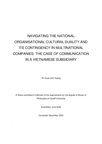 The dynamics between home and host country’s culture in multinational companies’ foreign subsidiaries have been increasingly attracting the attention of researchers in the field of cross-cultural management. Studying how local employees navigate between their national culture and their company’s organisational culture can deepen our understanding of the global-local tension in multinational companies and assist managers in better implementing management practices, managing the local workforce and successfully operating foreign subsidiaries. However, current literature offers limited theoretical and empirical works on the influence of such cultural duality on employees’ behaviour or the cognitive process through which individuals navigate these cultures in daily operations. Aiming to fill this gap, this research examines how local employees at a Vietnamese subsidiary of a US-based multinational garment manufacturer navigated the Vietnamese culture and the company’s organisational culture in interpersonal communication at work– an aspect that is the backbone of any organisation especially a culturally diverse one. Through conducting semi-structured interviews with 35 local employees, this research has found a dynamic cultural hybridity that stemmed from the changes in employees’ engagement with their national and organisational cultural values. It has specified eight contextual and individual factors that could intrinsically or extrinsically impact individuals’ cultural manifestation. The research has also discovered how the different magnitude of national cultural values and the distance between national and organisational values interfered with individuals’ cultural negotiation and resulted in four types of cultural configurations. This research has contributed to the knowledge of cultural duality in foreign subsidiaries as well as the study of cultural contextualisation and contingency. It has also added to the literature on intercultural communication by offering insight into how individuals’ unique cultural profiles impact their daily communication. Managers can benefit from this research to develop and adjust strategies to manoeuvre employees’ cultural tendencies and effectively realise their organisational agenda.