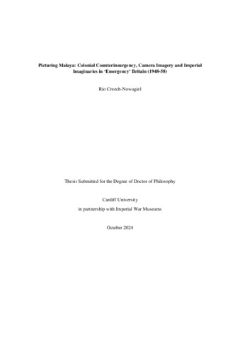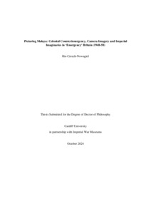 This thesis examines camera imagery related to the Malayan ‘Emergency’, a colonial counterinsurgency campaign launched by Britain against communist independence fighters in the Federation of Malaya (known after independence as Malaysia) between 1948 and 1960. Using imagery found in newspapers, magazines, advertising, film and war museums, this thesis explores mobilisations of camera imagery by supporters and critics of the campaign in metropolitan Britain (and the US). This thesis brings together visual material sourced from the Imperial War Museum’s archive and beyond, exploring an array of narratives and strategies employed by government and corporate institutions in their efforts to justify and promote the costly campaign and by anti-war campaigners in their efforts to end it. This thesis also engages with the cultural memory of the Malayan ‘Emergency’ in Britain, focusing on re-framings of the insurgency in war museums. Applying critical approaches to the archive, this thesis offers an original perspective on the theme of public imaginaries of Empire and colonial insurgency during an underexplored period of British conflict history. Paying attention to visual material highlights the critical role that visuality played in the exposure of colonial atrocities, the staging of counterinsurgency fantasies, the promotion of creation myths and the display of enemy captives in the metropolitan arena during the ‘Emergency’ era. This thesis reveals a diversity of forms of visual culture that were produced and circulated in Britain (and the US) during an overlooked period of crisis marked by ‘end of Empire’ and the onset of the Cold War, which can hold up a mirror to the present day.