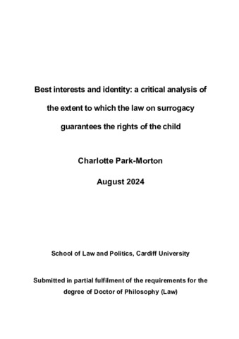 Best interests and identity: A critical analysis of the extent to which the law on surrogacy guarantees the rights of the child.