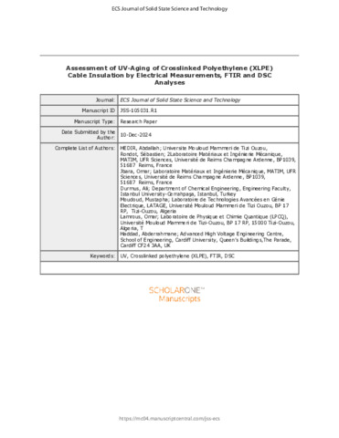 Assessment of UV-aging of crosslinked polyethylene cable insulation by electrical measurements, FTIR and DSC analyses.