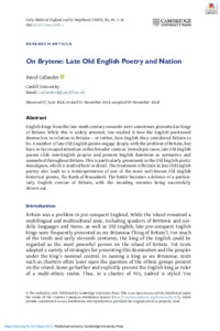 English kings from the late ninth century onwards were sometimes presented as kings of Britain. While this is widely attested, less studied is how the English positioned themselves in relation to Britain – or rather, how English they considered Britain to be. A number of late Old English poems engage deeply with the problem of Britain, but have so far escaped attention in this broader context. In multiple cases, late Old English poems elide non-English peoples and present English dominion as normative and unmarked throughout Britain. This is particularly prominent in the Old English poetic Menologium, which is studied here in detail. The treatment of Britain in late Old English poetry also leads to a reinterpretation of one of the most well-known Old English historical poems, The Battle of Brunanburh. The battle becomes a defence of a particularly English version of Britain, with the invading enemies being successfully driven out.
