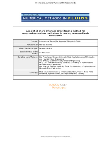 A mollified sharp-interface direct forcing method for suppressing spurious oscillations in moving immersed body simulations.