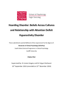 Hoarding Disorder (HD) has garnered increasing attention in recent years, driven by its significant impact on individuals’ daily lives and mental health. Despite this growing interest, a considerable gap remains in understanding how hoarding manifests across different cultural contexts and the nature of its co-occurrence with Attention-Deficit/Hyperactivity Disorder (ADHD). This preface summarises the two interconnected studies, firstly, a systematic review of the association between HD and ADHD and secondly, an empirical research study exploring cross-cultural differences in hoarding-related beliefs. Within the literature, there are observations that both HD and ADHD share cognitive and behavioural features that may contribute to their co-occurrence. This systematic review was initiated to investigate the extent of the relationship between HD and ADHD, particularly looking to see if patterns emerged for symptoms of ADHD on hoarding behaviour and visa versa. The distinctiveness of their relationship was also understood in the context of other clinical groups. A comprehensive search strategy across databases identified 13 studies with a total of 2,632 participants which investigated the relationship of between HD and ADHD. A narrative synthesis revealed a significant correlation between inattention and hoarding severity, highlighting the role of inattention as a crucial factor in HD. Mixed findings regarding hyperactivity and impulsivity were noted, suggesting that these symptoms may not be as central to HD. The review also noted limitations, including the reliance on self-report measures and a lack of sample diversity. Nonetheless, this review provides valuable insights into the relationship between HD and ADHD, particularly highlighting the role of inattention as a key factor in HD. It advances the theoretical understanding of how these disorders intersect and informs clinical practice by emphasising the need for integrated assessment approaches. The review's findings suggest that future research should focus on longitudinal studies and diverse samples to better understand the developmental and cross-cultural aspects of this relationship. By addressing these gaps, researchers and clinicians can develop more targeted and effective interventions for individuals with co-occurring HD and ADHD. The empirical research, on the other hand, emerged from recognising that while Western perspectives on hoarding have been well-documented, there has been limited exploration of how hoarding-related beliefs differ across cultures. This study aimed to address this gap by examining beliefs in both Eastern and Western samples, using the Saving Beliefs Questionnaire to compare beliefs in HD and healthy control (HC) groups in a 2x2 factorial design. Outcomes showed significant cultural differences in hoarding-related beliefs. Eastern participants endorsed higher beliefs related to emotion and responsibility compared to Western participants. In contrast, Western participants showed stronger endorsements of control-related beliefs. The study found no significant cultural differences in beliefs about aesthetics, memory, wastefulness, and usefulness. Within the HD group, participants endorsed beliefs about emotion, memory, control, and responsibility more so than the HCs, aligning with existing research on maladaptive cognitions in HD. This research contributes to the theoretical understanding of hoarding by highlighting the role of cultural factors in shaping hoarding-related beliefs. The findings suggest that treatment approaches should be culturally sensitive, perhaps with a focus on emotional attachment and responsibility-related beliefs in Eastern populations and control-related beliefs in Western populations. While certain cognitive dimensions of HD are universal, their expression and relevance can vary significantly across cultures. The research advances the biopsychosocial model of HD by incorporating cultural dimensions and suggests the need for further research to explore hoarding beliefs in diverse contexts. Overall, both studies collectively advance the understanding of hoarding from multiple perspectives—cognitive-behavioural and cultural—highlighting the need for an integrative approach to research and treatment. The systematic review and empirical research both accentuate the complexity of hoarding and the importance of considering cultural and cognitive factors in both theoretical models and clinical practice.