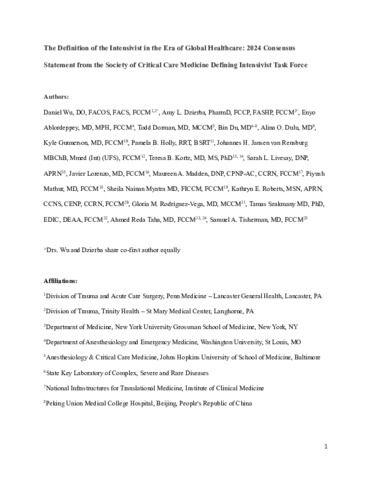 Wu, Daniel, Dzierba, Amy L., Ablordeppey, Enyo A., Dorman, Todd, Du, Bin, Dulu, Alina O., Gunnerson, Kyle, Holly, Pamela B., Jansen van Rensburg, Johannes, Kortz, Teresa B., Livesay, Sarah L., Lorenzo, Javier, Madden, Maureen A., Mathur, Piyush, Myatra, Sheila Nainan, Roberts, Kathryn E., Rodríguez-Vega, Gloria M., Szakmany, Tamas ORCID: https://orcid.org/0000-0003-3632-8844, Taha, Ahmed and Tisherman, Samuel A.