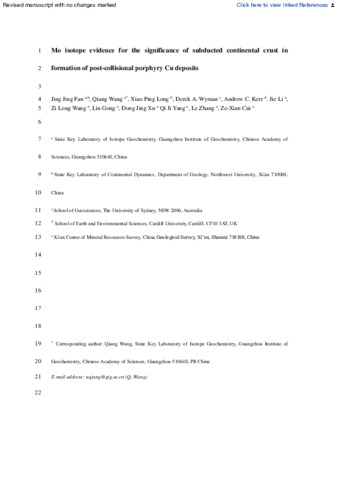 Mo isotope evidence for the significance of subducted continental crust in formation of post-collisional porphyry Cu deposits.