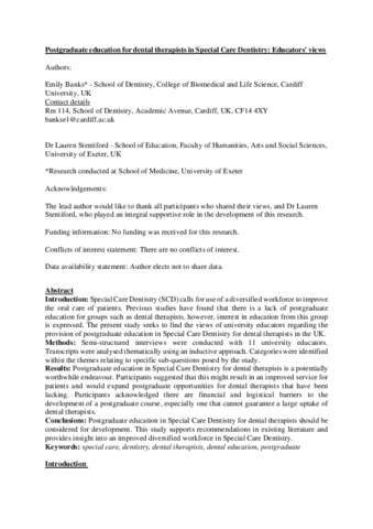 Postgraduate education for dental therapists in special care dentistry: Educators' views.