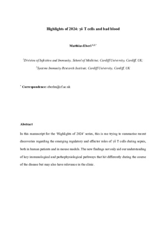 In this manuscript for the “Highlights of 2024” series, this is me trying to summarize recent discoveries regarding the emerging regulatory and effector roles of γδ T cells during sepsis, both in human patients and in mouse models. The new findings not only aid our understanding of key immunological and pathophysiological pathways that hit differently during the course of the disease but may also have clinical relevance for a life-threatening condition that requires swift intervention and tailored patient management.