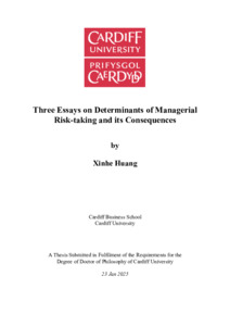 This thesis consists of three essays on the determinants of managerial risk-taking and its consequences in the US context. The first essay investigates whether sensation-seeking chief executive officers (CEOs) affect firms’ bankruptcy risk in the US market. Using the hand-collected data of sensation-seeking CEOs, we find that firms with such CEOs are more likely to file for bankruptcy than those with non-sensation-seeking CEOs. The positive association between sensation-seeking CEOs and bankruptcy risk holds after controlling for CEO characteristics, dropping firms in the aviation industry, keeping financial and utility industries, and excluding the dot-com bubble and global financial crisis periods. Our results are unchanged after using propensity score matching and univariate PSM-difference-in-difference (DiD) to address the endogeneity issues. We explain this positive impact of sensation-seeking CEOs on firms’ bankruptcy risk by showing that firms led by sensation-seeking CEOs are more likely to adopt risky investment strategies and more aggressive accounting practices. Furthermore, this positive association is more pronounced for firms with a lower likelihood of hostile takeover, lower analyst coverage, and lower institutional ownership. Overall, our results are consistent with previous evidence that sensation-seeking CEOs are more risk-tolerant and, thus, are more likely to underestimate the riskiness of corporate policies and accept inefficient investment decisions, engendering the formation of bankruptcy. The second essay investigates whether firms led by sensation-seeking CEOs are more likely to have higher stock price crash risk. Using hand-collected data of CEOs’ pilot licences to proxy for the sensation-seeking personality trait, we show that firms with sensation-seeking CEOs exhibit higher stock price crash risk. This result holds after addressing endogeneity concerns, using propensity score matching and several DiD tests. We explain this result by showing that sensation-seeking CEOs are more likely to hide bad news by using real earnings management and induce bad news by choosing operating segments with higher systematic risk due to their career and personal diversification concerns. This positive impact of sensation-seeking on stock price crash risk appears to be prominent in firms led by CEOs with low managerial ability. We then provide evidence that market reaction is positive for firms led by sensation-seeking CEOs, indicating that outside investors value and recognise them. Additionally, this positive association between sensation-seeking CEOs and stock price crash risk is more pronounced for misvalued firms. These results suggest that outsiders are more likely to recognise sensation-seeking CEOs; however, they fail to appropriately value them. These misvaluations are more likely to force sensation-seeking CEOs to withhold negative information, consequently inducing higher stock price crash risk. Finally, we provide evidence that this positive association between sensation-seeking CEOs and stock price crash risk is more pronounced for firms with lower competitive threats. Overall, our results show that a salient personality trait, a sensation-seeking personality trait, induces firms to have higher stock price crash risk. The third essay investigates whether fringe benefits are more likely to incentivise top-paid executives to engage in managerial risk-taking and its consequences. This essay uses plausibly exogenous variation in executives’ loyalty to show that firms seek to move their top-paid executives ‘from disloyalty to loyalty’ through awarding fringe benefits. We show that fringe benefits can decrease disloyal executives’ mobility and incentivise managers to change positive firm risk. These results are robust after performing a variety of robustness tests such as (i) alternative sampling (e.g., excluding $1 salary executives, the Delaware-incorporated cohort, market over-volatile periods, using alternative windows of stack DiD); (ii) the additional control variable (e.g., risk-taking incentives); (iii) the additional fixed effect; (iv) the alternative model specification; (v) PSM; (vi) an alternative instrumental variable, and (vii) carefully examining exclusion restriction assumption. We explain these results by showing that top-paid executives with higher fringe benefits are more likely to decrease cash holdings to invest in research and development (R&D) and capital expenditures. Finally, executives with higher fringe benefits are more likely to enhance firms’ operating performance, total factor productivity, and non-labour, labour investment, and total efficiency. These results support our argument that fringe benefits can increase the job satisfaction of corporate executives and incentivise them to undertake value-enhancing risky corporate investments, thereby increasing firms’ efficiency.