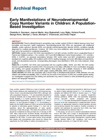 Early manifestations of neurodevelopmental copy number variants in children: A population-based investigation.