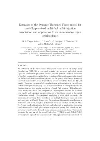 An extension of the widely-used Thickened Flame model for Large Eddy Simulations (TFLES) is proposed to take into account multi-fuel multi-injection combustion processes. Indeed, in such systems the local variations of the fuel composition and the local evolution of the equivalence ratio issued by differential diffusion effects inferred by the potential different nature of the used fuels need to be addressed for a proper use of the standard TFLES model. To do so, the extended model relies on a description of the differentiated fuel injections mixing that is computed from a transported mixture fraction tracing the spatial evolution of each fuel stream. This allows to both incorporate local fuel composition inhomogeneities into the combustion model and a proper parameterization of the flame sensor or turbulent combustion model. The proposed modeling is then used to predict the ammonia–air swirling flame stabilized by multiple hydrogen injection holes and operated at Cardiff University. To perform this specific simulations, a dedicated and novel analytically reduced chemical kinetics model for NH3-H2-N2/air combustion is also derived and validated at gas turbine operating conditions and for multiple ammonia–hydrogen binary fuel blends as well as ternary fuel blends derived from ammonia decomposition. The results obtained by the use of the novel Multi-Fuel TFLES model (MF-TFLES) are compared against the conventional TFLES predictions and assessed via OH* chemiluminescence and NO Planar Laser Induced Fluorescence (NO-PLIF) experimental data. As shown, the proposed modeling improves the flame shape and structure prediction by assuring the correct local application of the artificial flame thickening coherently, taking into consideration the multi-fuel complex mixing process, a feature that the standard TFLES model cannot consider hindering the quality of the prediction.