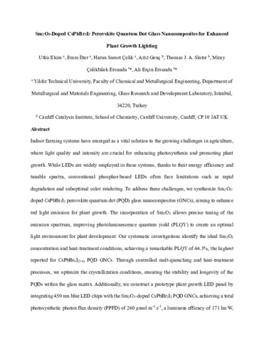 Sm2O3-doped CsPbBr1I2 perovskite quantum dot glass nanocomposites for enhanced plant growth lighting.