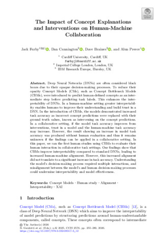 Deep Neural Networks (DNNs) are often considered black boxes due to their opaque decision-making processes. To reduce their opacity Concept Models (CMs), such as Concept Bottleneck Models (CBMs), were introduced to predict human-defined concepts as an intermediate step before predicting task labels. This enhances the interpretability of DNNs. In a human-machine setting greater interpretability enables humans to improve their understanding and build trust in a DNN. In the introduction of CBMs, the models demonstrated increased task accuracy as incorrect concept predictions were replaced with their ground truth values, known as intervening on the concept predictions. In a collaborative setting, if the model task accuracy improves from interventions, trust in a model and the human-machine task accuracy may increase. However, the result showing an increase in model task accuracy was produced without human evaluation and thus it remains unknown if the findings can be applied in a collaborative setting. In this paper, we ran the first human studies using CBMs to evaluate their human interaction in collaborative task settings. Our findings show that CBMs improve interpretability compared to standard DNNs, leading to increased human-machine alignment. However, this increased alignment did not translate to a significant increase in task accuracy. Understanding the model’s decision-making process required multiple interactions, and misalignment between the model’s and human decision-making processes could undermine interpretability and model effectiveness.
