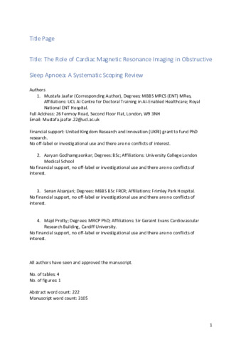 | Jaafar, Mustafa, Godhamgaonkar, Aaryan, Alsanjari, Senan and Protty, Majd 2025. The role of cardiac magnetic resonance imaging in obstructive sleep apnea: a systematic scoping review. Journal of Clinical Sleep Medicine 21 (9) , pp. 1627-1638. 10.5664/jcsm.11742 |