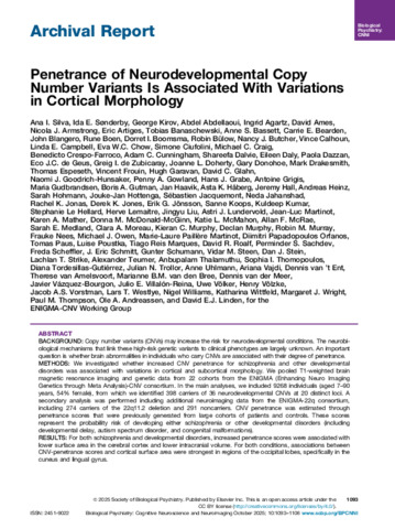 Silva, Ana ORCID: https://orcid.org/0000-0002-1184-4909, Sønderby, Ida, Kirov, George ORCID: https://orcid.org/0000-0002-3427-3950, Abdellaoui, Abdel, Agartz, Ingrid, Ames, David, Armstrong, Nicola, Artiges, Eric, Banaschewski, Tobias, Basset, Anne, Bearden, Carrie, Blangero, John, Boen, Rune, Boomsma, Dorret, Bulow, Robin, Butcher, Nancy, Calhoun, Vince, Campbell, Linda, Chow, Eva, Ciufolini, Simone, Craig, Michael, Crespo-farrocco, Benedicto, Cunningham, Adam, Dalvie, Shareefa, Daly, Eileen, Dazzan, Paola, de Geus, Eco, Zubicaray, Greig, Doherty, Joanne, Donohoe, Gary, Drakesmith, Mark, Espeseth, Thomas, Frouin, Vincent, Garavan, Hugh, Glahn, David, Goodrich-Hunsaker, Naomi, Gowland, Penny, Grabe, Hans, Grigis, Antonie, Gudbrandsen, Maria, Gutman, Boris, Haavik, Jan, Haberg, Asta, Hall, Jeremy ORCID: https://orcid.org/0000-0003-2737-9009, Heinz, Andreas, Hoh mann, Sarah, Hottenga, Jouke-Jan, Jacquemont, Sebastien, Jahanshad, Neda, Jones, Rachel, Jones, Derek ORCID: https://orcid.org/0000-0003-4409-8049, Jonsson, Erik, Koops, Sanne, Kumar, Kuldeep, Le Hellard, Stephanie, Lemaitre, Herve, Liu, Jingyu, Lundervold, Astri, Martinot, Jean-Luc, Mather, Karen, McDonald-McGinn, Donna, McMahon, Katie, McRae, Allan, Medland, Sarah, Moreau, Clara, Murphy, Kieran, Murphy, Declan, Murray, Robin, Nees, Frauke, Owen, Michael ORCID: https://orcid.org/0000-0003-4798-0862, Papadopoulos Orfanos, Diimitri, Paus, Tomas, Poustka, Luise, Reis Marques, Tiago, Roalf, David, Sachdev, Perminder, Scheffler, Freda, Schmitt, Eric, Schumann, Gunter, Steen, Vidar, Stein, Dan, Strike, Lachlan, Teumer, Alexander, Thalamuthu, Anbupalam, Thomopoulos, Sophia, Tordesillas-Gutierrez, Diana, Trolbr, Julian, Uhlmann, Anne, Vajdi, Ariana, Van't Ent, Dennis, Van Amelsvoort, Therese, van den Bree, Marianne ORCID: https://orcid.org/0000-0002-4426-3254, van der Meer, Dennis, Vazquez-Bourgon, Javier, Villalon-Reina, Julio, Volker, Uwe, Volzke, Henry, Vorstman, Jacob, Westlye, Lars, Williams, Nigel ORCID: https://orcid.org/0000-0003-1177-6931, Wittfeld, Katharina, Wright, Margaret, Thompson, Paul, Andreassen, Ole and Linden, David ORCID: https://orcid.org/0000-0002-5638-9292