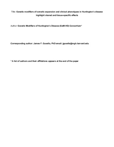 Genetic modifiers of somatic expansion and clinical phenotypes in Huntington’s disease highlight shared and tissue-specific effects.