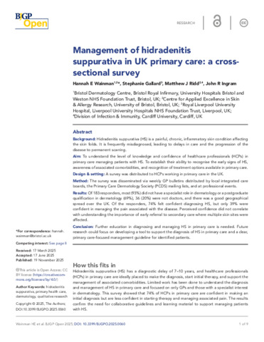 Management of hidradenitis suppurativa in UK primary care: cross-sectional survey.