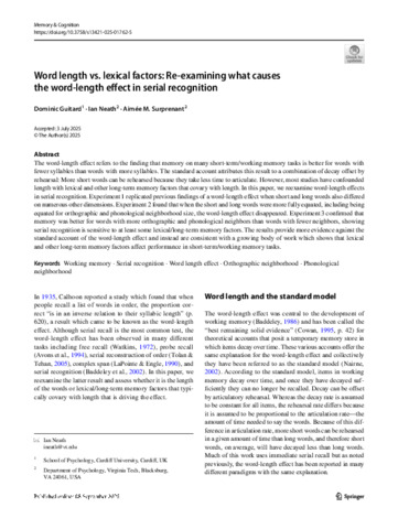 Word length vs. lexical factors: Re-examining what causes the word length effect in serial recognition.