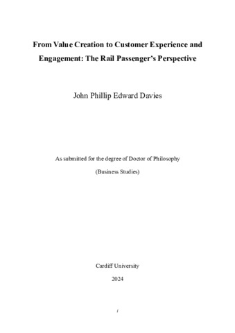 The objective of this thesis is to develop and test a conceptual model to help understand rail passengers’ behaviour from the customer perspective. Services marketing has focused on the experiential value that emerges positively and negatively for customers during use (i.e. their value-in-use) as they interact with providers (i.e. value co-creation), social actors (i.e. social value co-creation) and resources (i.e. independent value creation). Research has only examined these processes separately but has not examined value creation holistically as a combination of these processes from the customer perspective. This thesis fills the gap by estimating holistic value creation as a novel higher-order construct resulting from these processes, in the customers’ value sphere. Holistic value creation is important as it is useful for examining the construct’s relationships with customer experience, passenger satisfaction, and customer engagement to provide a more comprehensive understanding of the rail passenger’s perspective. To conceptualise passenger’s value creation, the thesis draws predominantly on service logic research and the paradigms value model, but also draws upon research in the paradigms of Service Dominant Logic and Customer Dominant Logic. The integrative model developed and tested in this thesis also advances public transport research. At present, public transport research suggests that supporting passengers’ value creation processes, experiences and service engagement increases satisfaction. However, no study has examined precisely how passengers’ value creation, experiences and engagement relate to passenger satisfaction. The thesis fills this gap by examining the impact of passengers’ holistic value creation and service experience on satisfaction and engagement behaviours. This offers a means of improving passenger satisfaction in Transport for Wales’s rail users. Main data collection was performed between November 2022 and March 2023 through a self-administered survey distributed online to cover a range of rail users throughout Wales and targeted passengers of Transport for Wales, specifically. Overall, a cleaned dataset of 406 respondents was obtained and Partial Least Squares Structural Equation Modelling (PLS-SEM) was used to test the proposed model. The key findings of the thesis are summarised in five key points. Value co-creation contributes most strongly to holistic value creation, followed by social value co-creation and independent value creation. Second, customer experience fully mediates the relationship viii between holistic value creation and passenger satisfaction. Third, passenger satisfaction most strongly relates to the engagement behaviour of advocacy, followed by feedback intentions and future patronage. Fourth, customer experience plays a more important role in the value engagement relationship than satisfaction or holistic value creation. The main theoretical implication of the thesis is as follows. While service logic offers a multi-faceted approach to understanding value creation that can improve a providers’ performance via strategic options, integrating its separate processes offers a more holistic understanding to how customers create value. Customers’ value creation is still a complex and multi-dimensional phenomenon, which is empirically shown in this thesis. The novel model, proposed and validated in this thesis, advances the theory and research on rail passenger services by offering a unique customer perspective. This provides a comprehensive understanding of the complexities of passenger behaviour that is useful to researchers and practitioners in rail services and other service contexts.