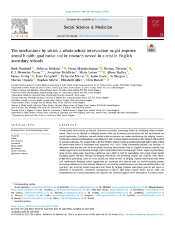 The mechanisms by which a whole-school intervention might improve sexual health: qualitative realist research nested in a trial in English secondary schools.