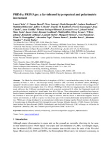 The PRobe far-Infrared Mission for Astrophysics (PRIMA) is an infrared observatory for the next decade, currently in Phase A, with a 1.8 m telescope actively cooled to 4.5 K. On board, an infrared camera, PRIMAger, equipped with ultra-sensitive kinetic inductance detector arrays, will provide observers with a coverage of mid-infrared to far-infrared wavelengths from 24 to 264 μ m . PRIMAger will offer two imaging modes: the hyperspectral mode will cover the 24 to 84 μ m wavelength range with a spectral resolution R ≥ 8 , whereas the polarimetric mode will provide polarimetric imaging in four broadbands from 80 to 264 μ m . These observational capabilities have been tailored to answer fundamental astrophysical questions such as black hole and star-formation co-evolution in galaxies, the evolution of small dust grains over a wide range of redshifts, and the effects of interstellar magnetic fields in various environments, as well as to open a vast discovery space with versatile photometric and polarimetric capabilities. PRIMAger is being developed by an international collaboration bringing together French institutes (Laboratoire d’Astrophysique de Marseille and CEA) through the Center National d’Etudes Spatiales (CNES, Paris, France), the Netherlands Institute for Space Research (SRON, Leiden, Netherlands), and the Cardiff University (Cardiff, UK) in Europe, as well as the Jet Propulsion Laboratory and Goddard Space Flight Center in the United States.