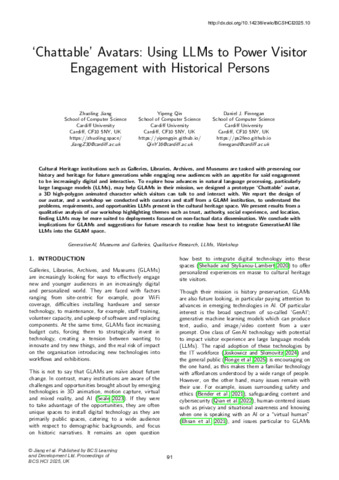 ‘Chattable’ Avatars: Using LLMs to power visitor engagement with historical persons.