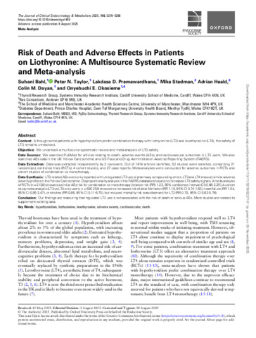 Risk of death and adverse effects in patients on Liothyronine: a multi-source systematic review and meta-analysis.