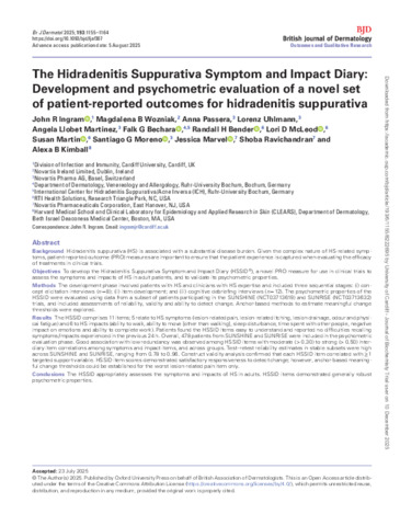 The Hidradenitis suppurativa symptom and impact diary: development and psychometric evaluation of a novel set of patient reported outcomes for hidradenitis suppurativa.
