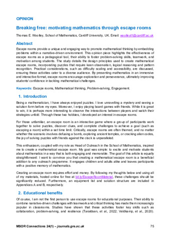 Escape rooms provide a unique and engaging way to promote mathematical thinking by embedding problems within a narrative-driven environment. This opinion piece highlights the effectiveness of escape rooms as a pedagogical tool, their ability to foster problem-solving skills, teamwork, and motivation among students. The study details the design principles used to create mathematical escape rooms, incorporating puzzles that require keen observation, logical reasoning and pattern recognition. Practical considerations, such as difficulty scaling and accessibility, are discussed, ensuring these activities cater to a diverse audience. By presenting mathematics in an immersive and interactive format, escape rooms encourage exploration and perseverance, ultimately improving students' confidence in tackling mathematical challenges.