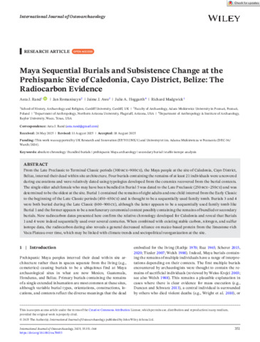 Maya sequential burials and subsistence change at the prehispanic site of Caledonia, Cayo District, Belize: the radiocarbon evidence.