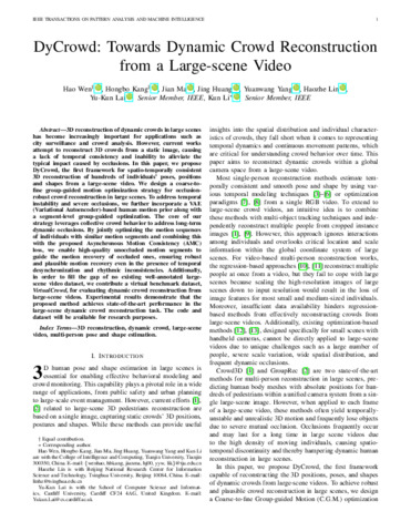 3D reconstruction of dynamic crowds in large scenes has become increasingly important for applications such as city surveillance and crowd analysis. However, current works attempt to reconstruct 3D crowds from a static image, causing a lack of temporal consistency and inability to alleviate the typical impact caused by occlusions. In this paper, we propose DyCrowd, the first framework for spatio-temporally consistent 3D reconstruction of hundreds of individuals' poses, positions and shapes from a large-scene video. We design a coarse-to-fine group-guided motion optimization strategy for occlusion-robust crowd reconstruction in large scenes. To address temporal instability and severe occlusions, we further incorporate a VAE (Variational Autoencoder)-based human motion prior along with a segment-level group-guided optimization. The core of our strategy leverages collective crowd behavior to address long-term dynamic occlusions. By jointly optimizing the motion sequences of individuals with similar motion segments and combining this with the proposed Asynchronous Motion Consistency (AMC) loss, we enable high-quality unoccluded motion segments to guide the motion recovery of occluded ones, ensuring robust and plausible motion recovery even in the presence of temporal desynchronization and rhythmic inconsistencies. Additionally, in order to fill the gap of no existing well-annotated large-scene video dataset, we contribute a virtual benchmark dataset, VirtualCrowd, for evaluating dynamic crowd reconstruction from large-scene videos. Experimental results demonstrate that the proposed method achieves state-of-the-art performance in the large-scene dynamic crowd reconstruction task. The code and dataset will be available for research purposes.