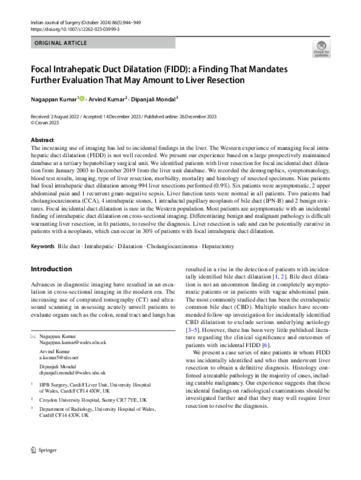Focal intrahepatic duct dilatation (FIDD): a finding that mandates further evaluation that may amount to liver resection.