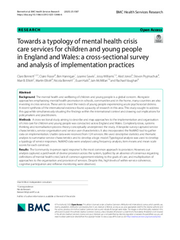 Towards a typology of mental health crisis care services for children and young people in England and Wales: a cross-sectional survey and analysis of implementation practices.