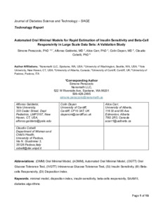 The Oral Minimal Model (OMM) analysis offers unique measures of glucose–insulin regulation during glucose challenges. However, its manual test-by-test implementation limits scalability in large studies. We introduce the Automated Oral Minimal Model (AOMM), a tool that streamlines and automates the entire OMM workflow while preserving analytical fidelity, enabling efficient batch processing of large datasets. Built on SAAM II software, AOMM was validated against manually extracted results from Sunehag et al (Obesity (Silver Spring), 2008), accurately reproducing key parameters such as insulin sensitivity (Si) and beta-cell responsivity (Φ) with high precision and substantial time savings. AOMM, with its user-friendly interface, facilitates broader application of minimal modeling in research and clinical studies.