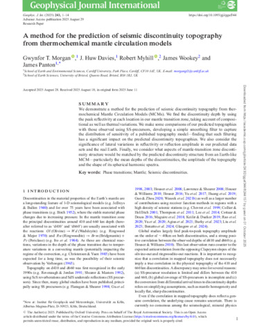 We demonstrate a method for the prediction of seismic discontinuity topography from thermochemical Mantle Circulation Models (MCMs). We find the discontinuity depth by using the peak reflectivity at each location in our mantle transition zone, taking account of compositional as well as thermal variations. We make some comparisons of our predicted topographies with those observed using SS-precursors, developing a simple smoothing filter to capture the distribution of sensitivity of a published topography model – finding that such filtering has a significant impact on the predicted discontinuity topographies. We also consider the significance of lateral variations in reflectivity or reflection amplitude in our predicted datasets and the real Earth. Finally, we consider what aspects of mantle-transition zone discontinuity structure would be matched by the predicted discontinuity structure from an Earth-like MCM – particularly the mean depths of the discontinuities, the amplitude of the topography and the shape of its spherical harmonic spectra.