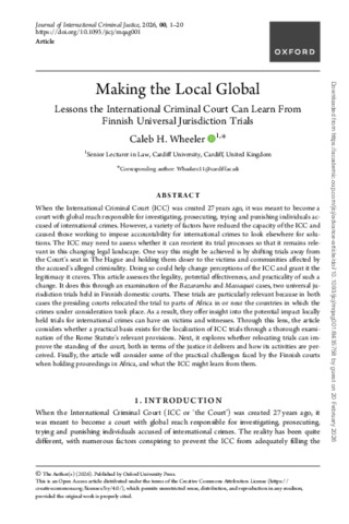 Making the local global: lessons the International Criminal Court can learn from Finnish universal jurisdiction trials.